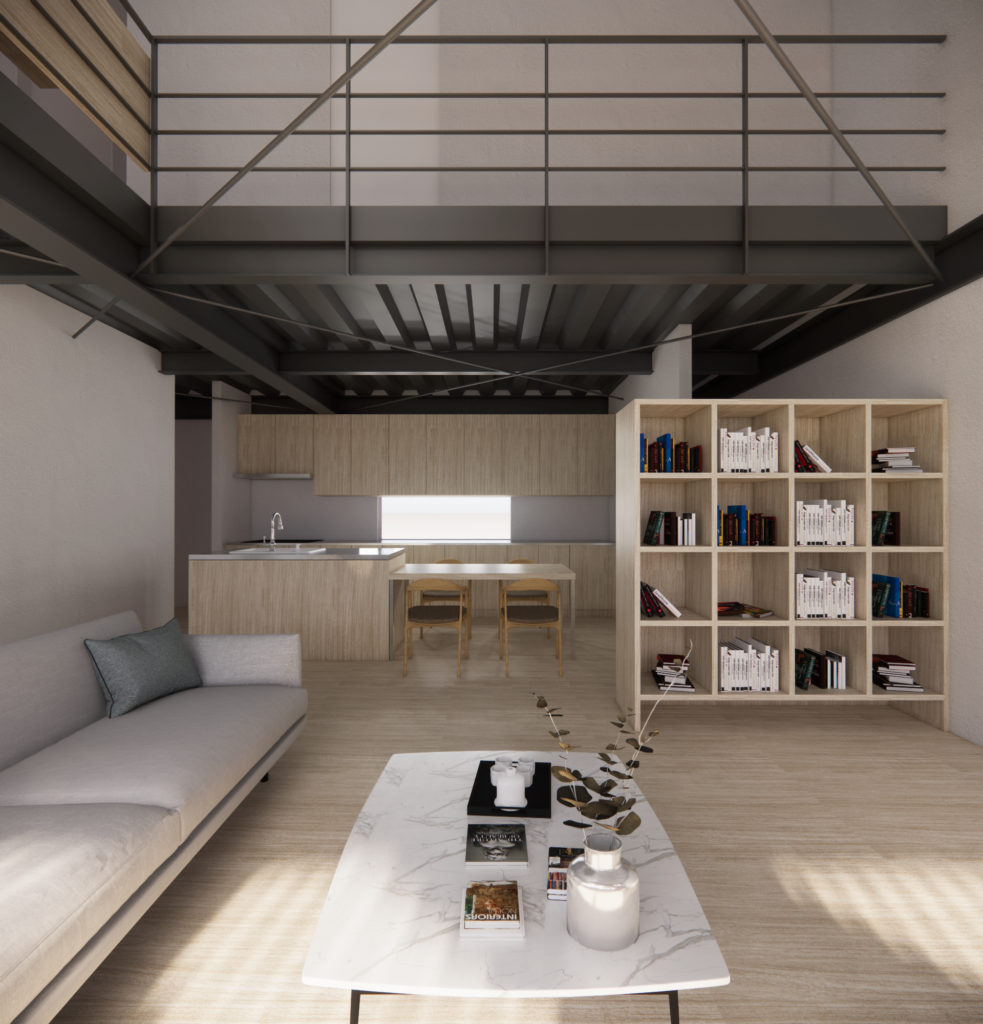 既存鉄骨倉庫を初めて見た瞬間に「あ、これは建築の中にもう一つ建築をつくる感じがいいな」と思った。